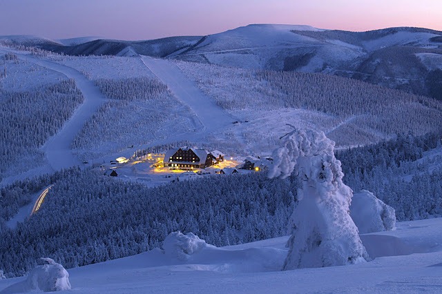I love this picture of a resort somewhere…in the midst of a cold and desolate landscape.  The lights not only beckon to safety.  They also beam a welcome to the warmth of companionship and a sense of home.